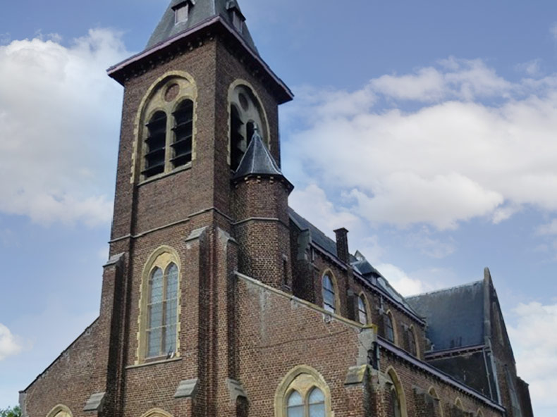 Construite en 1910, pour répondre à l'agrandissement de la Commune de Péruwelz au-delà de la gare, elle est la dernière-née des églises de la Commune. L'architecte Pavot choisit le style néo-gothique tant pour le bâtiment que pour le mobilier. Extérieurement, on remarque une tour épaulée par une tourelle polygonale. Intérieurement, la nef est séparée des bas-côtés par des colonnes à crochets ; le transept n’est pas saillant.
